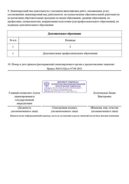 Лицензия на образовательную деятельность